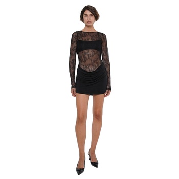 Body in pizzo a manica lunga personalizzabile Mini abito elegante Casual taglie forti abito aperto dietro gonna con cappuccio in vita naturale intrecciata