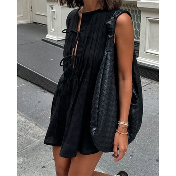 Высококачественная женская одежда на заказ, черная Элегантная кофта с завязкой-бабочкой, короткая тканая ткань, женская одежда OEM/ODM